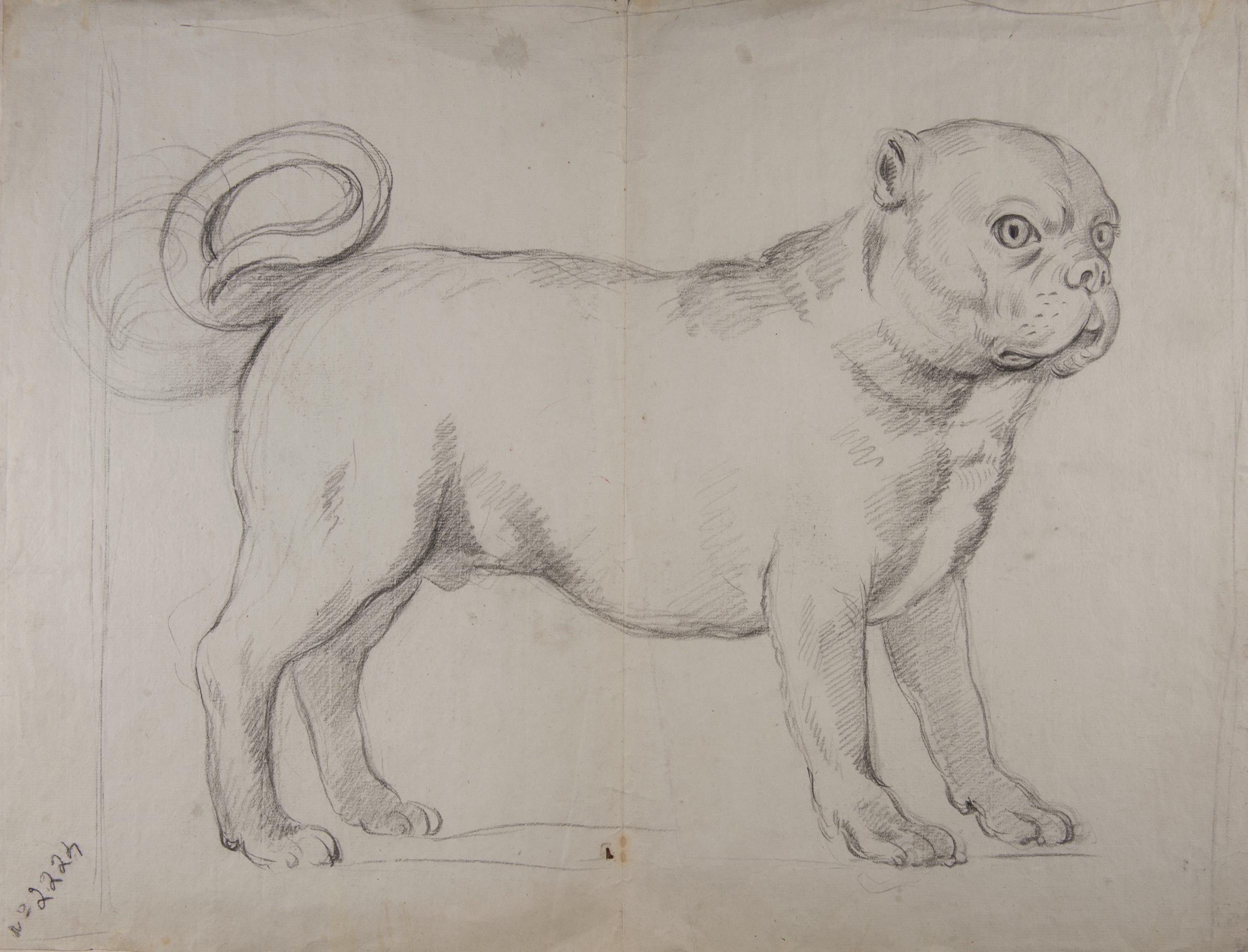 The present drawing is a naturalistic depiction of a French bulldog by Antonio Carnicero. The careful study of the animal’s appearance and anatomy, the delicate pencil strokes and the characteristic zig-zag hatching allow this drawing to be stylistically associated with the depictions of horses that the artist executed around 1800. 1 The latter were made as preparatory studies for the series of prints on the Royal Riding School for which Carnicero produced thirteen plates. They depict the classic repertoire of dressage positions, while the riders are the leading members of the Spanish royal house as well as the royal favourite and Prime Minister Manuel Godoy.