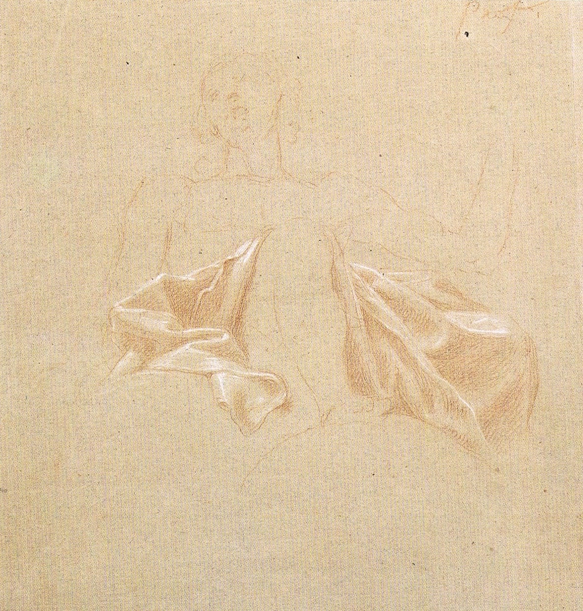 • Red chalk with white chalk highlights on paper