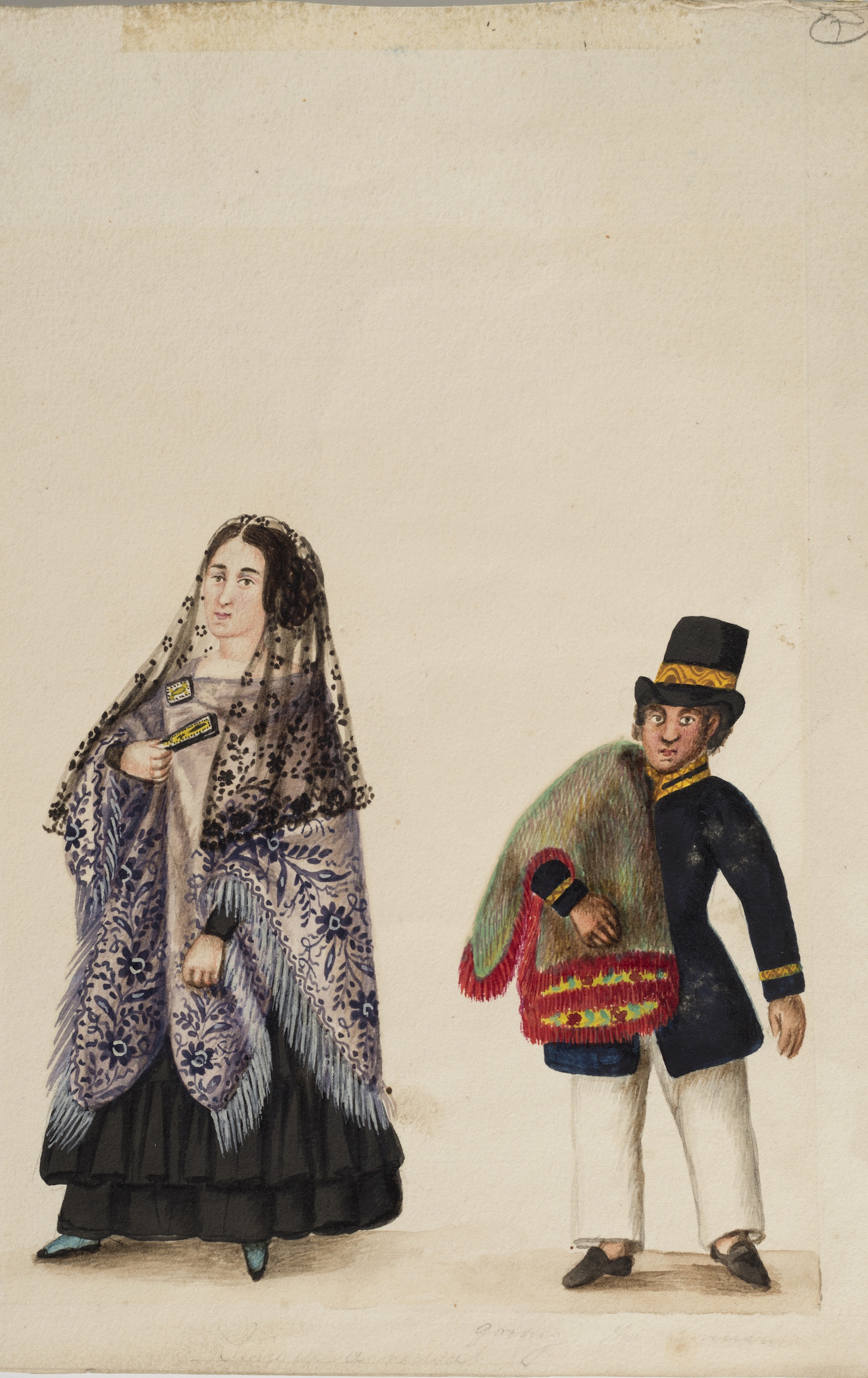 • Inscribed: “Señores a misa/ going to church” (in pencil, lower centre); “7” (in pencil, upper right); “C” (in pencil, on the reverse, upper right)
