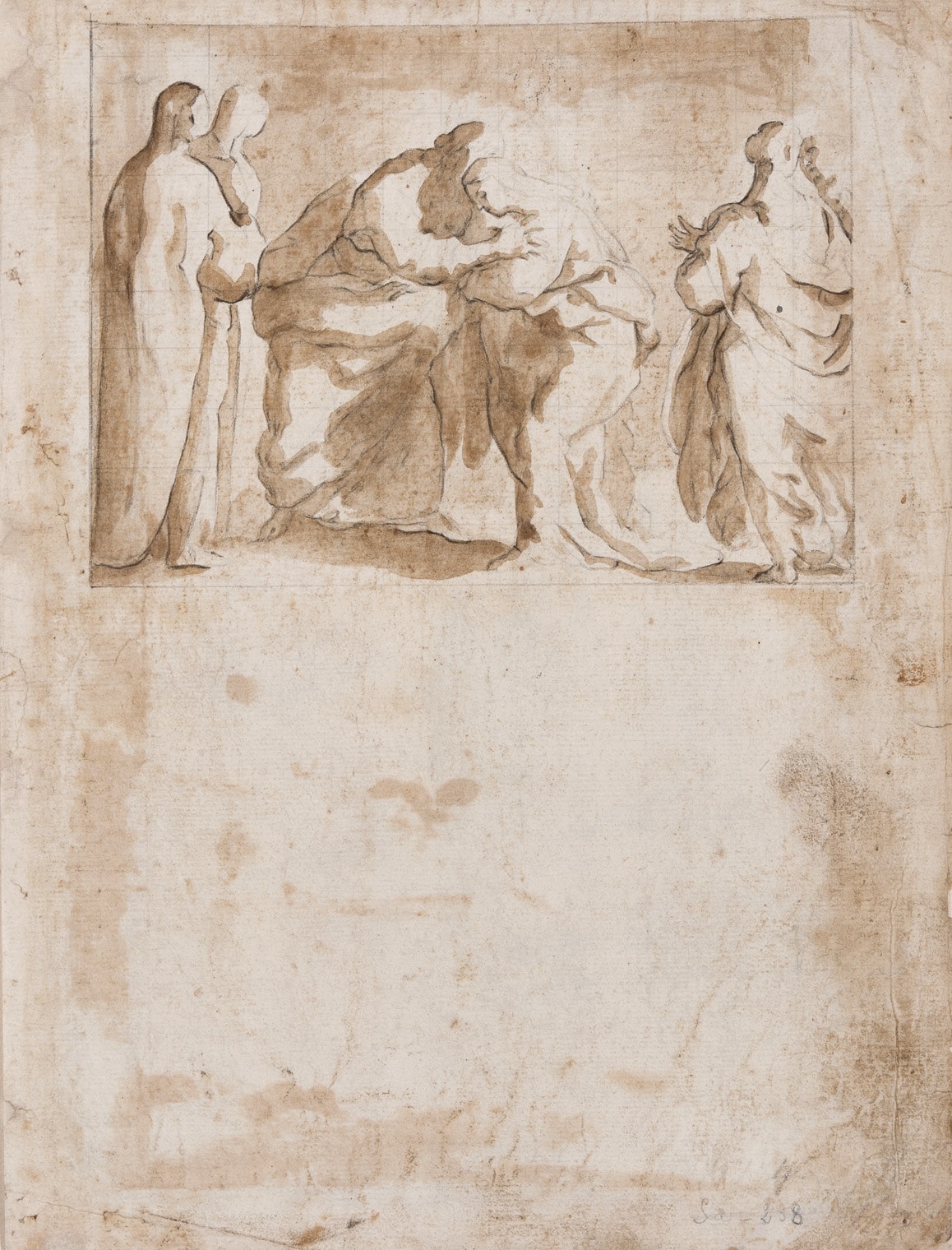 - Black chalk and sepia wash on laid paper