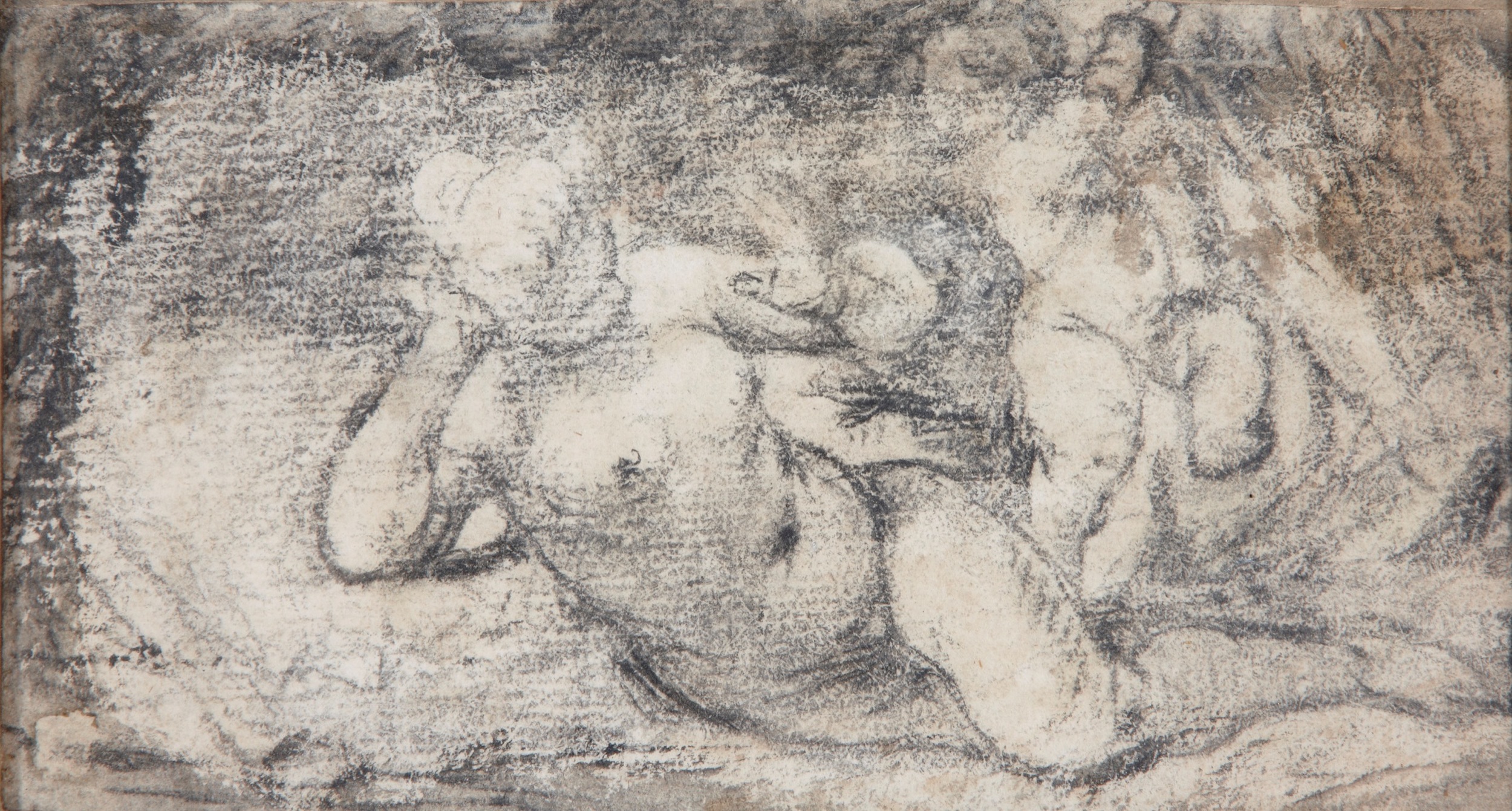 The present drawing is executed in charcoal or soft black chalk on white paper. The thick, at times slightly blurred strokes, the manner of creating the shadows with a continuous zigzagging line and the way in which the fingers are defined with parallel strokes all identify this sketch as the work of Juan Antonio Frías y Escalante. The few known drawings by the artist all share this free and energetic use of charcoal, evident, for example, in Saint Joseph (Museo del Prado, D-361) and Galatea (Galleria degli Uffizi, inv. no. 10156S). Escalante was born in Cordoba in 1633 where he initially trained, possibly in the studio of Antonio del Castillo. He moved to Madrid in the late 1640s and entered the studio of Francisco Rizi. Through his association with Rizi and his own presence at court Escalante encountered the work of the Venetian painters, particularly Tintoretto and Veronese, from whom he copied their “style of composition and graceful poses”. 4 In addition to this influence, Escalante made use of Flemish prints, some of which he copied almost exactly, while also looking to Alonso Cano’s elegant models. With regard to the latter influence, the Cupid in the present sheet is notably similar to the small angel in the lower part of Cano’s drawing of Two Angels holding up a Curtain (Madrid, Biblioteca Nacional, inv. B.235). 5 The present drawing also reveals certain stylistic and thematic parallels with other drawings attributed to Cano such as Venus, Cupid and a Satyr of around 1645-1650 (Uffizi, inv. 10260S) 6 and the Female Nude in the Museo del Prado (D-6320). 7 These works are among the few depictions of the nude in Spanish Golden Age art.