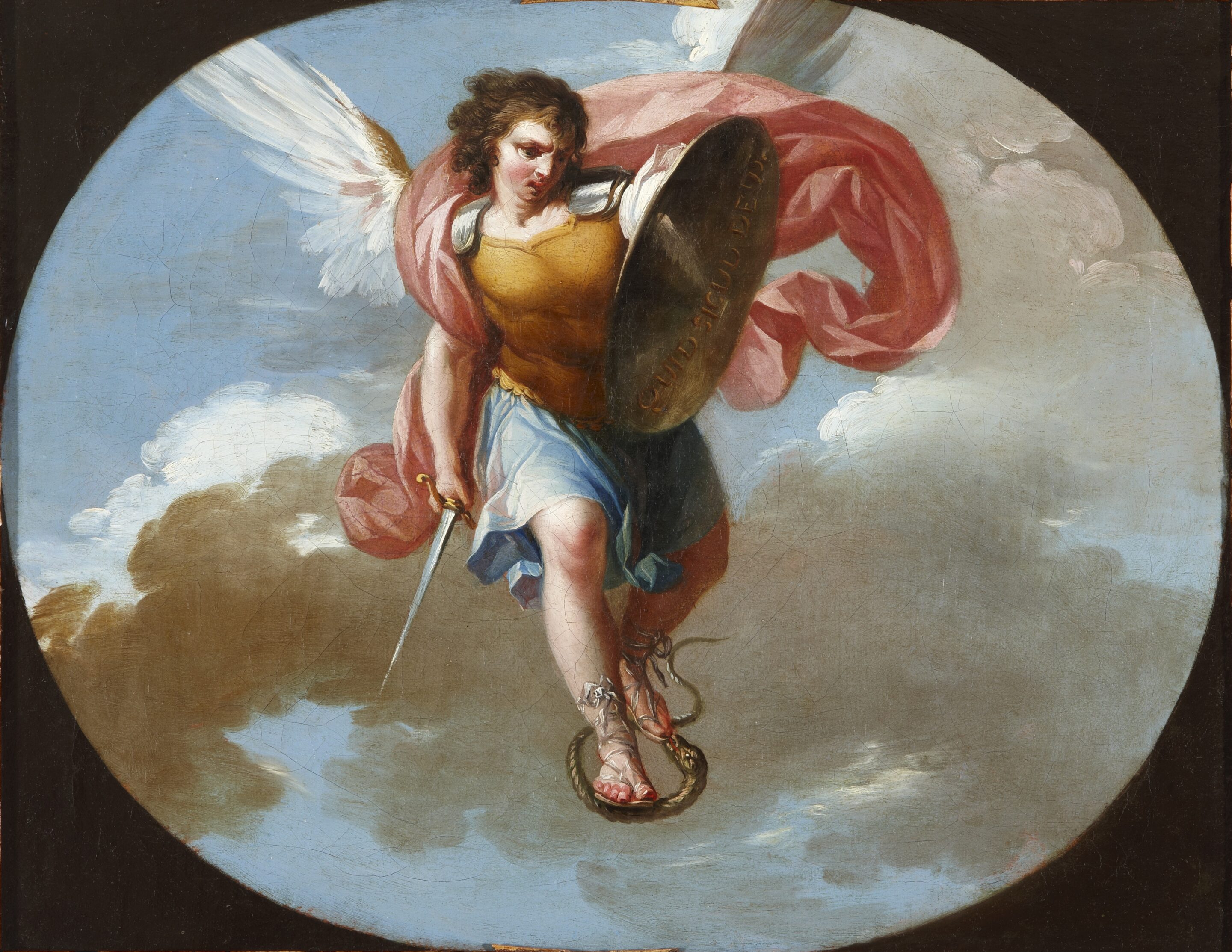 In the mid-17th century, a small oratory dedicated to Jacobo Gratij, Knight of the Order of Christ and Apostolic Nuncio of Pope Gregory XIII to the court of Philip II of Spain, was erected in the center of Madrid, according to the measurements of Juan de Torija, the first surveyor of royal works. Nuncio Jacobo Gratij had settled in Madrid, been ordained a priest, and bequeathed his fortune to the foundation of the Royal, Ancient and Venerable Congregation of the Unworthy Slaves of the Most Blessed Sacrament, whose mission was to spread Eucharistic worship. A century later, the building, known as the Royal Oratory of the Knight of Grace, no longer met the needs of the Congregation. Its reconstruction was decided during the reign of Charles III and work began in 1782, under the direction of Juan de Villanueva, the first architect of royal works. Villanueva, who was commissioned for the first time on a religious project, himself recommended that the tempera paintings on the dome be entrusted to the painter Zacarías González Velázquez, then the most renowned painter at court. Zacarías had trained with Mariano Salvador Maella, his brother-in-law, before entering the Academy of Fine Arts of San Fernando in Madrid in 1777. His father, Antonio González Velázquez, also a painter, was its director. After his years of apprenticeship, he was appointed Academician of San Fernando in 1790, an institution he then directed from 1828 to 1831. The artist worked for the court, executing frescoes for various royal sites such as the Pardo Palace and the Casa del Labrador residence in Aranjuez. At the same time, he received commissions for religious works throughout the country. He thus produced works for the oratory of the Santa Grotto in Cadiz (with Goya), the cathedral of Toledo, the cloister of the Basilica of San Francisco el Grande in Madrid, the tabernacle of the cathedral of Jaén, as well as several canvases and mural decorations for the Royal Oratory of the Knight of Grace in Madrid, the work to which we refer here. For the latter, and in accordance with the available documentation, Zacarías had received instructions directly from the Congregation regarding the themes to be executed that would adorn the half-orange vault, the skylight and the pendentives. To decorate the triangular spaces of the four pendentives, it was agreed that the figures of “Saint Michael, Saint Gabriel, Saint Raphael and the Holy Guardian Angel” would be painted. Before work on the dome began (we know that it had already begun on March 28, 1792), Zacarías González Velázquez probably had to submit sketches of the paintings he was going to make to the Congregation for approval. Some of these oil on canvas sketches are preserved, such as those depicting the Old Testament passages that mention the sacrament of the Eucharist, preserved in the Peralada Castle Museum in Catalonia. Also preserved are the four pendants, works that we present here, which remained in the possession of their author until his death in 1834, as evidenced by the inventory of the assets of his testamentary succession. The document in question states: “145. Four sketches of the four Archangels that appear on the pendentives of the church of the Knight of Grace, one foot and six inches long and one foot and three inches high, with a value of four hundred reales… 400. The works were awarded to his daughter Clara González Velázquez, as indicated in the document certifying her share of the inheritance. The four canvases depict, within oval shapes, the flying figures of the Archangels and the Guardian Angel, each with an attribute that helps identify them. Thus, Saint Michael is depicted crushing a serpent that symbolizes Evil. Saint Gabriel holds lilies in his hands and points towards the dove of the Holy Spirit, two emblems of the Annunciation. Saint Raphael holds a fish. As for the Guardian Angel, he carries a child in his arms, whom he protects. The colours, elegance, and movement of the figures make these works among the best of Zacarías González Velázquez’s production and references in Spanish neoclassical painting. They are all the more important since the tempera paintings made by the artist on the pendentives of the oratory have not been preserved. Severely damaged by humidity, they were chipped away down to the mortar layer during the restoration work on the building that took place between 1975 and 1979 and were irretrievably lost. Following this, they were replaced with a decoration that included garland motifs and the Congregation’s coat of arms, and then restored, like the rest of the dome, in 2002. However, after locating the sketches that we present here, and also thanks to old photographs, it was decided in 2010 to recreate the original paintings on canvas and place them on the pendentives. The artist’s sketches have once again contributed to shedding light on a part of the history of the Oratory of the Knight of Grace, one of the great jewels of Madrid’s neoclassicism, which has also been able to regain its original appearance.